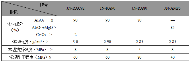 ·JN系列電爐頂預(yù)制件主要理化指標(biāo)·